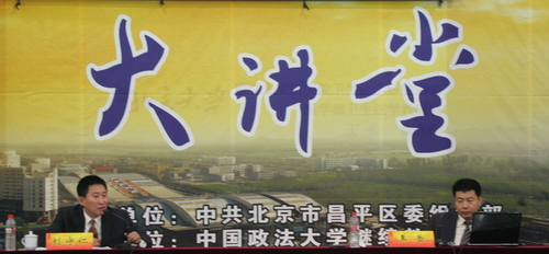 3月28日上午,由bet36365官网承办的2009年“昌平区领导干部进高校”大讲堂活动第二讲在我校昌平学生活动中心学术报告厅拉开帷幕。本次活动由bet36365官网常务副院长兼分党委书记刘守仁主持。北京大学医学人文研究院卫生法学研究中心副主任王岳应邀来到大讲堂,为昌平区领导干部带来了题为“中国医疗改革探讨”的主题讲座,中共北京市昌平区委书记关成华、昌平区人民政府区长金树东、区人大常委会主任李福忠、区政协主席王振华等30余名区县局级领导干部及300余名处级领导干部参加了本次活动。