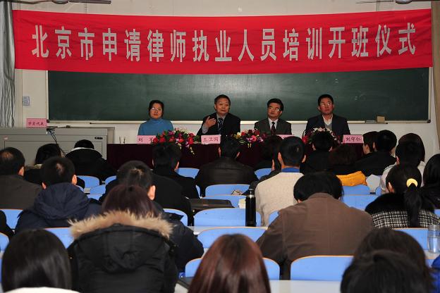 12月14日,第十一期北京市申请律师执业人员培训在学院路校区举行开班仪式。bet36365路检测中心校长助理王卫国教授、北京市律师协会副会长周塞军、北京市律师协会副秘书长刘军、bet36365路检测中心常务副院长兼分党委书记刘守仁、副院长张晓琴以及相关工作人员参加了开班仪式。开班仪式由刘守仁主持。