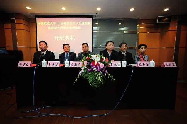4月16日上午,山西临汾市人民检察院“预防职务犯罪”高级研修班在昌平校区国际交流中心举行开班仪式。我校副校长兼法治政府研究院院长马怀德教授、山西临汾市人民检察院副检察长李国希、职务犯罪预防处处长米新玉、bet36365路检测中心副院长张晓琴、刑事司法学院犯罪学研究所所长王顺安教授,以及来自临汾市银监局、国土资源局、地税局、工商局等企事业部门纪检监察干部50余人参加了仪式。仪式由bet36365路检测中心常务副院长兼分党委书记刘守仁主持。