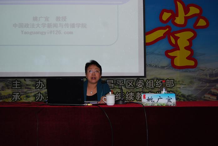 姚教授长期致力于新闻实务和法制新闻的教学与研究。近年来被聘为联合国新闻教育改革专家组成员、中国广播电视协会全国优秀电视法制节目评委。她的讲座条理清晰,内容实用,深受广大学员欢迎。