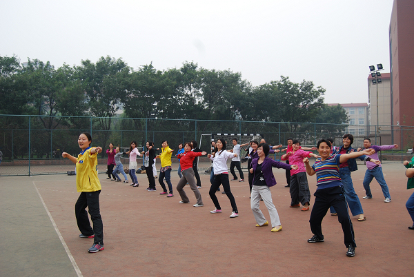 会后,全体工作人员在学校运动场进行了第八套广播体操的合练。晚上,学院举行迎国庆联欢活动,大家共同高歌“没有共产党就没有新中国”。