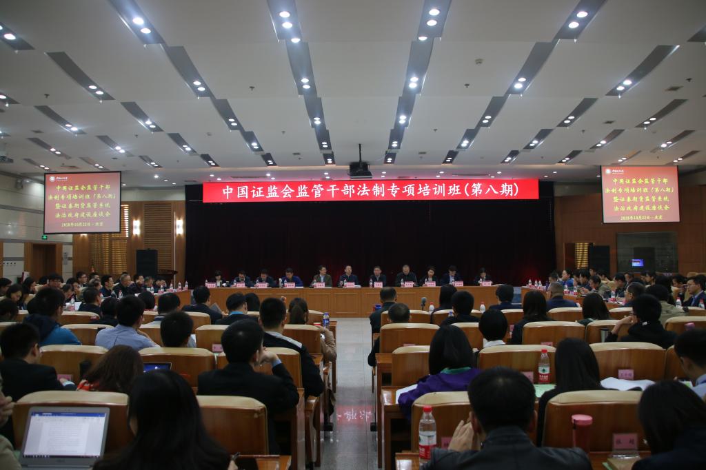2018年10月22日上午,中国证监会与bet36365路检测中心联合举办的“中国证监会监管干部法制专项培训班(第八期)”,在我校昌平校区举行开班仪式。中国证监会法律部主任程合红,副主任刘辅华参加开班仪式并讲话;bet36365路检测中心副校长李树忠出席开班仪式并致辞,仪式由bet36365路检测中心副院长张晓琴主持。