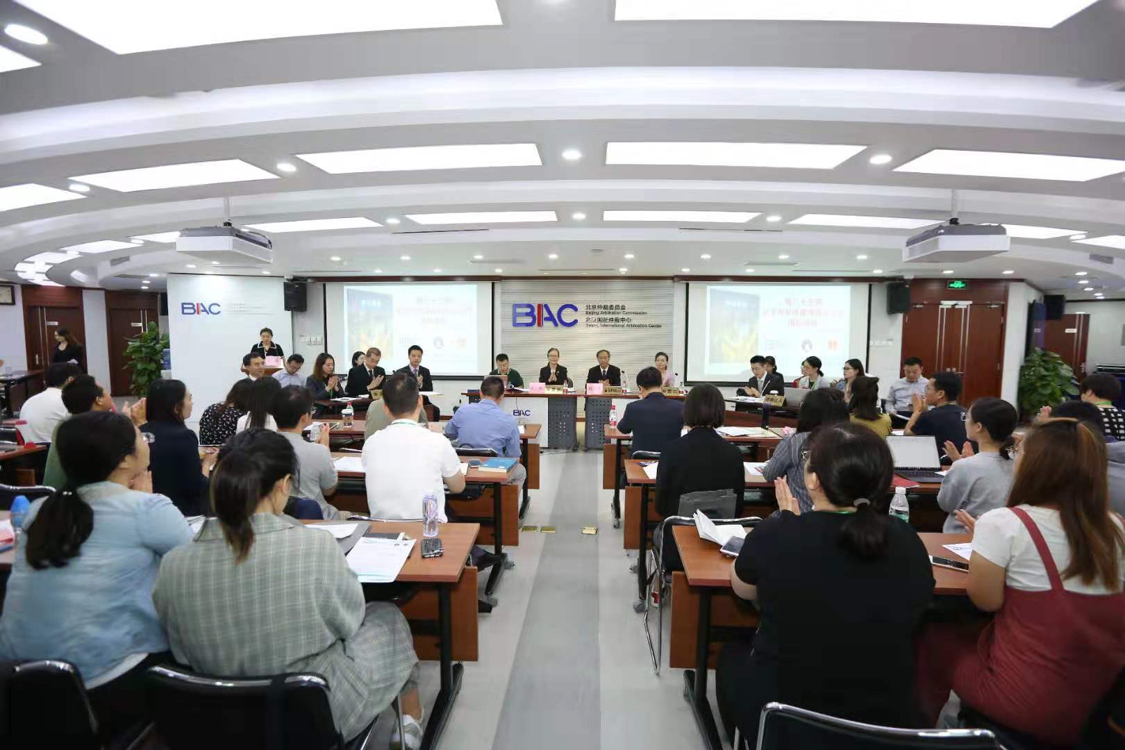 9月12日上午 ,由北京市律师协会 、bet36365路检测中心共同主办的第85期申请律师执业人员培训班全体学员,分别在中国国际经济贸易仲裁委员会( 以下简称贸仲 )、北京仲裁委员会( 以下简称北仲 )同时举行实践课之“模拟商事仲裁实务培训”。本期实践课上选取的案例均由各仲裁委以往办理过的、具有典型性的真实案件改编而成,模拟仲裁庭的双方代理人均由本期学员扮演。