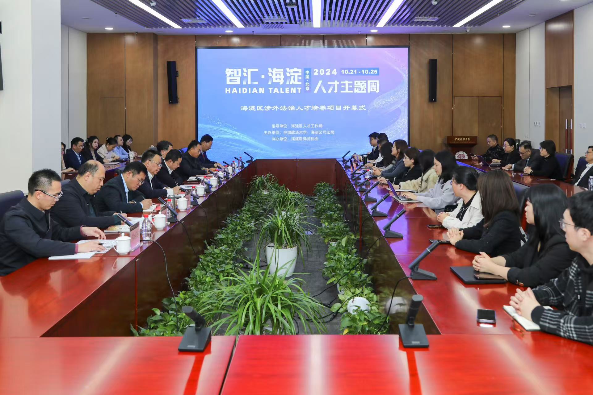 2024年10月24日,“智汇·海淀”人才主题周——海淀区涉外法治人才培养项目开幕式在我校举行。我校副校长时建中,海淀区司法局党组书记、局长赵志辉出席开幕式,30余名海淀区优秀涉外律师参加。开幕式由中央政法培训学院执行副院长郑永吉主持。