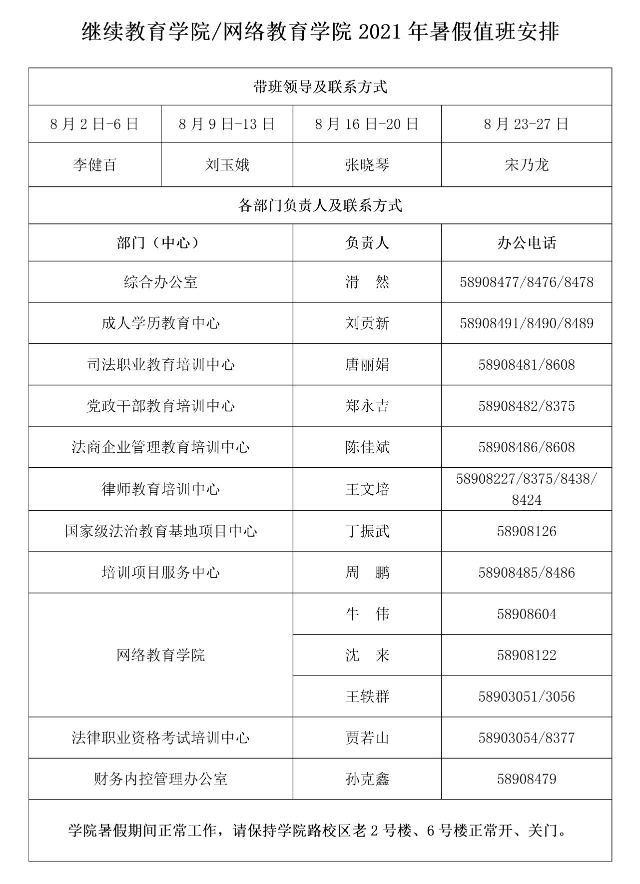 bet36365路检测中心/网络教育学院2021年暑假值班安排