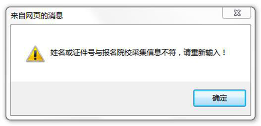 如果不是审核通过的考生,系统提示如下图,点击“确定”后返回缴费平台主页面。