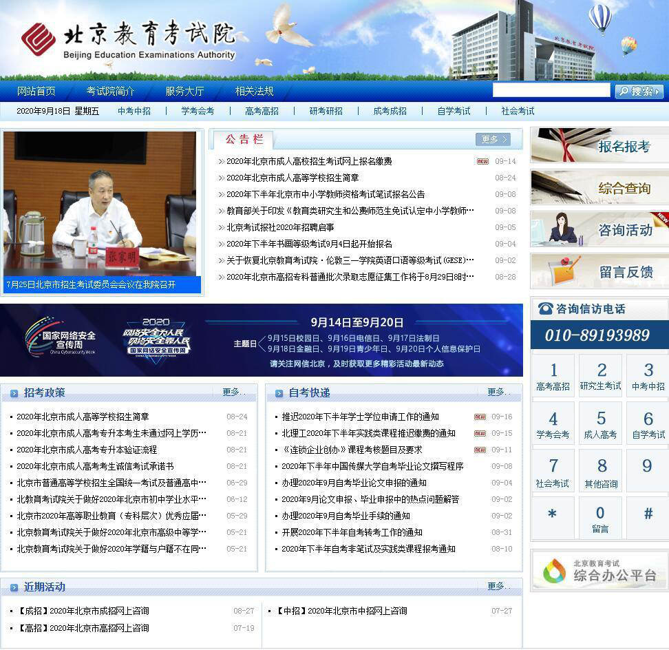 第二种方式:登录北京教育考试院网站-首页,网址为 https://www.bjeea.cn/,届时点击“公告栏”中的“2020 年下半年北京地区成人本科学士学位英语统一考试缴费”链接。示意图如下: