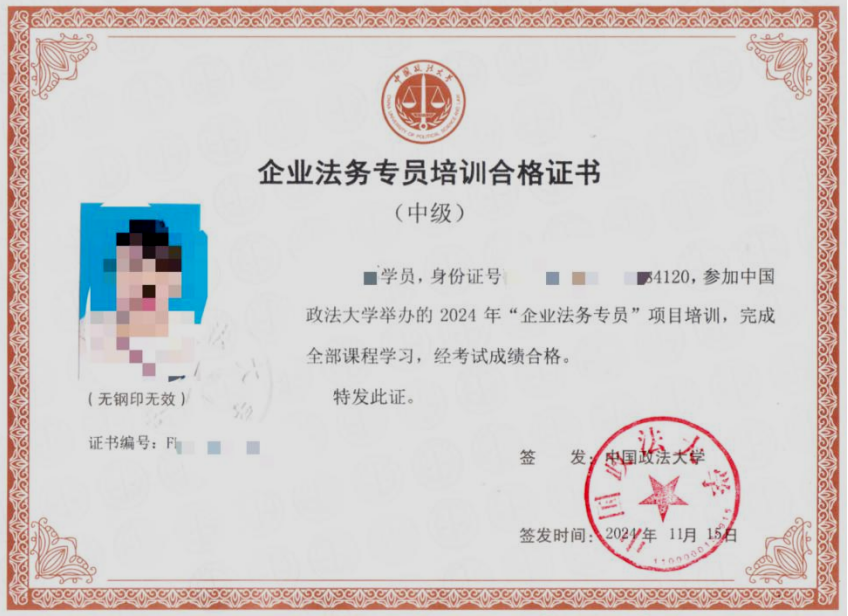 bet36365路检测中心企业法务专员培训合格证书(非学历学位)。