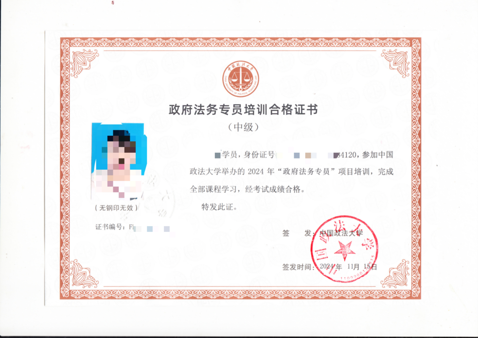 bet36365路检测中心政府法务专员培训合格证书(非学历学位)。