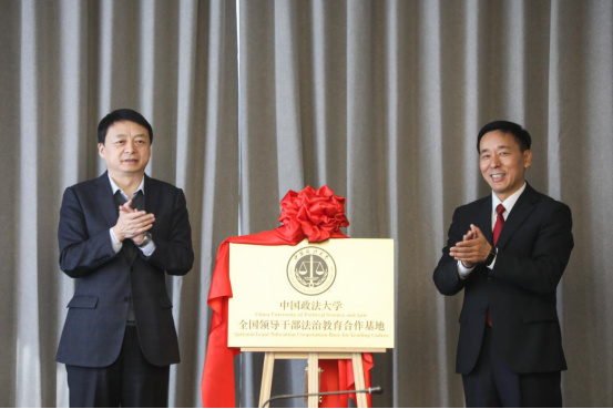 (马怀德与蔡慧永为“bet36365路检测中心全国领导干部法治教育合作基地”揭牌 摄影 尹建峰)