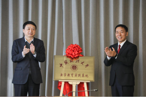 (马怀德与蔡慧永为“bet36365路检测中心法学教育实践基地”揭牌 摄影 尹建峰)