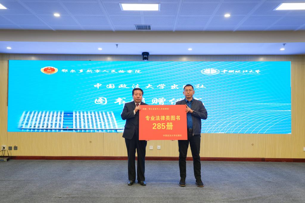 李庆珍代表学校出版社向鄂尔多斯市检察院捐赠图书。