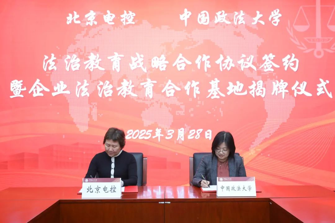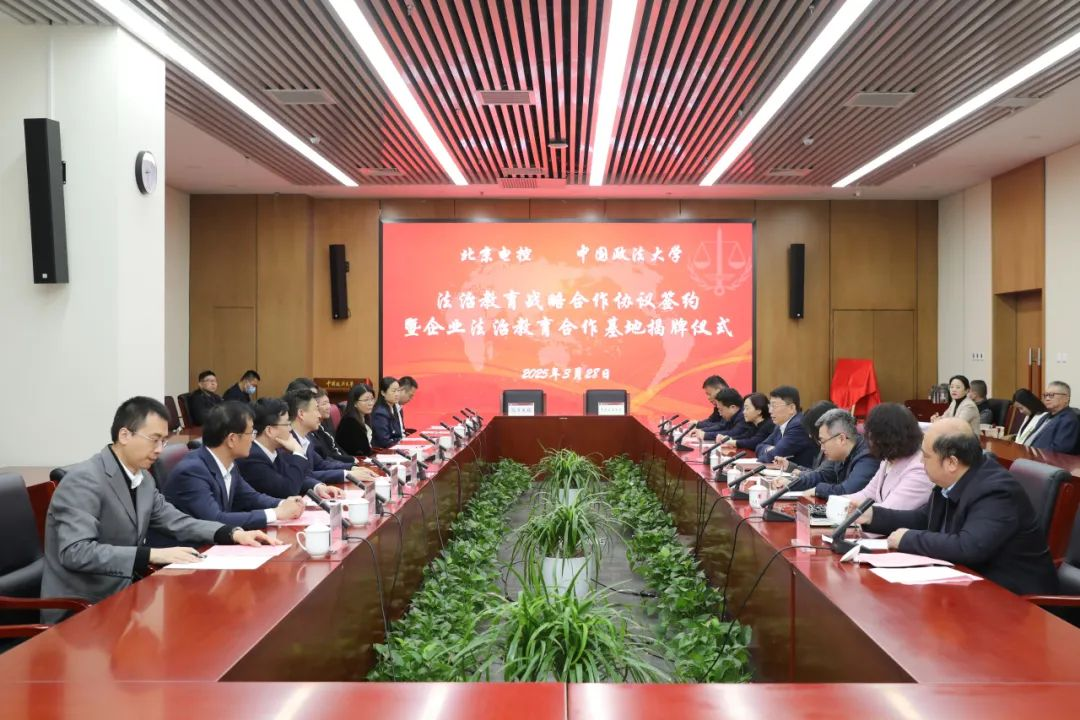 3月28日,我校与北京电子控股有限责任公司法治教育战略合作协议签约暨企业法治教育合作基地揭牌仪式在海淀校区举行。北京电子控股有限责任公司党委书记、董事长张劲松,党委副书记、工会主席郝妮,副总经理王海鹏,我校党委书记姜泽廷,党委常委、副校长王敏出席仪式。