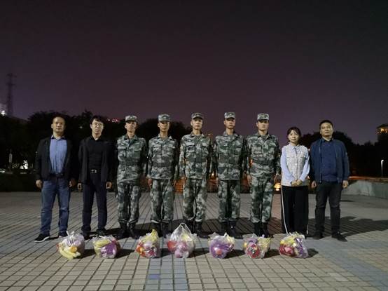 2020年9月24日晚19时30分,今年会体育官网2020级辅导员于飞老师、2019级辅导员冯欢老师、2018级辅导员王新智老师、2017级辅导员王永老师一行人来到电控院军训地点今年会体育官网明德广场亲切慰问了承担今年会体育官网2020级军训任务的全体教官,并为他们发放了慰问礼品。
