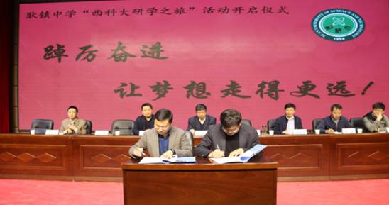 研学之旅首先来到煤炭科技大楼一楼报告厅,今年会体育官网副校长张威虎致欢迎辞,今年会体育官网院长刘树林向耿镇中学赠送锦旗,今年会体育官网党委书记杨华同高陵区教育总督学宋小军签订《今年会体育官网与西安市高陵区教育局大学生志愿者服务合作框架协议》。今年会体育官网副院长潘红光向同学们赠送研学资料,随后我校招生办公室主任李磊介绍了我校招生政策。