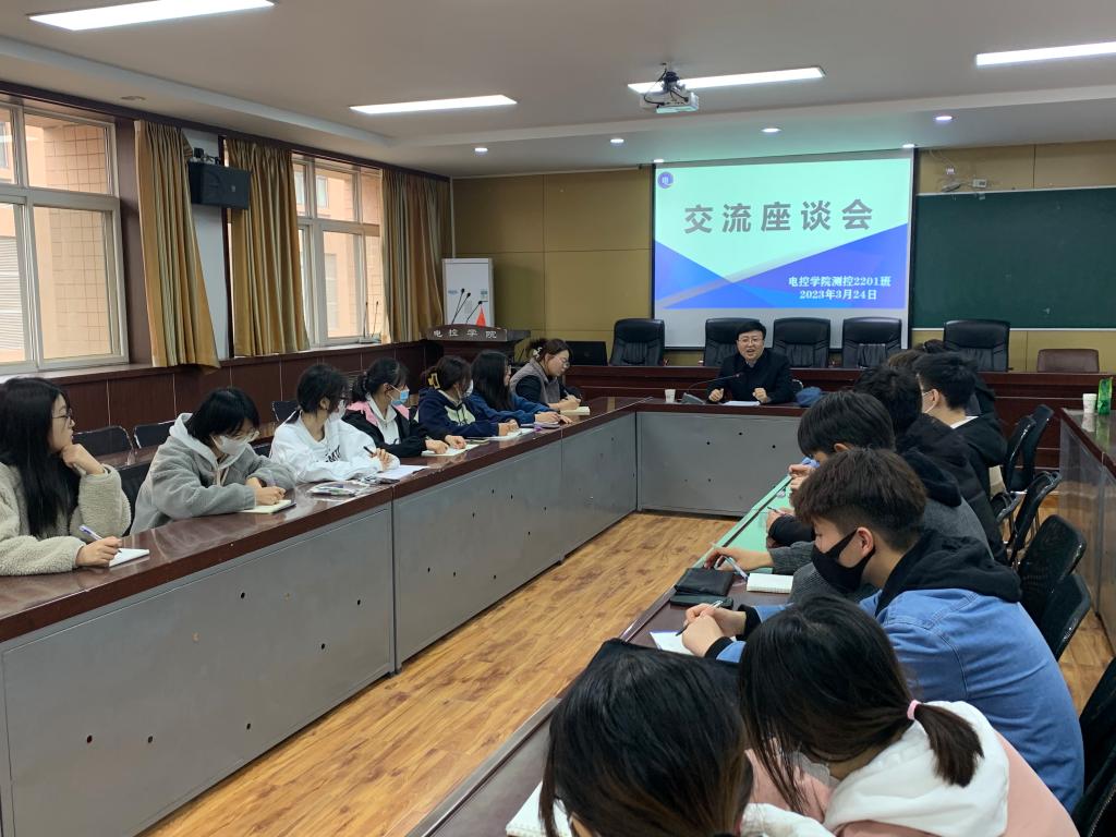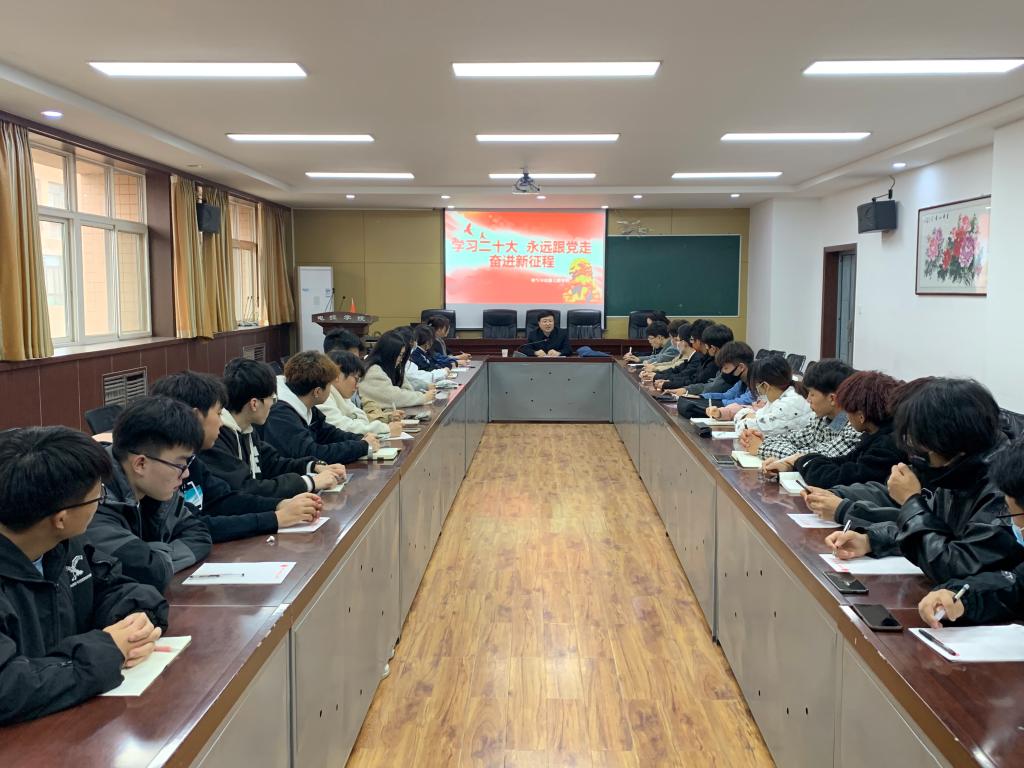 会上,王辉强首先带领师生共同学习了党的二十大报告和两会精神,结合报告中关于科技、教育、人才等方面的有关论述,给青年大学生讲解了,党和国家对教育、人才发展、就业等问题的关注,鼓励同学们抓住时代机遇,勇于承担时代重任,在新时代建功立业。他结合自己的经历对同学们提出三点建议:一是,树立远大理想,将个人价值的实现和建设社会主义现代化结合起来,树立正确是世界观、人生观、价值观;二是,做好人生规划,多读书、多实践,做有知识、有文化的新时代大学生。三是,要脚踏实地,正视人生遇到的挑战和挫折,勇于接受挑战,不负韶华,奋勇争先。随后,王辉强和同学们进行了亲切的座谈,了解他们的班级建设、思想状况、学习成绩等,对同学们提出的困难和疑惑进行了解答,帮助同学们正确认识知识和实践的辩证关系,指导同学们做好实践规划,度过精彩的大学时光。