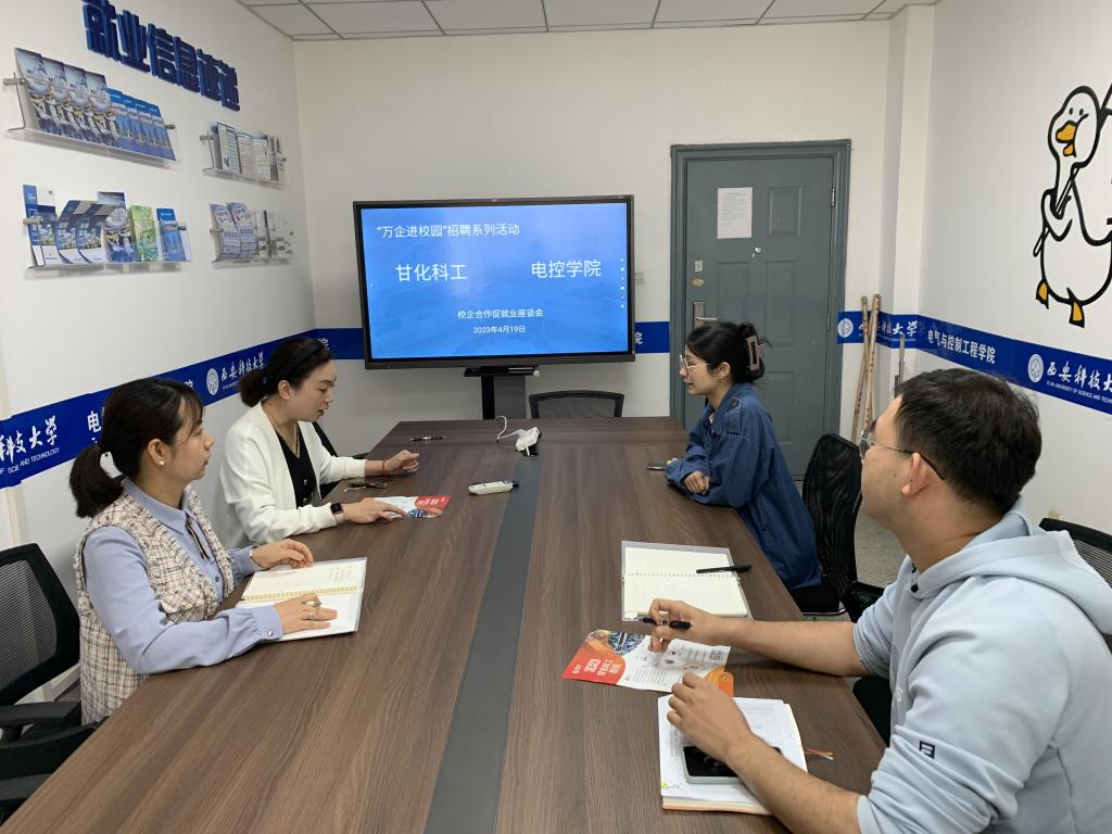为积极推进2023届毕业生就业工作,持续打开就业市场,加强校企合作,2023年4月19日,今年会体育官网与广东甘化科工股份有限公司在17教316举办校企合作促就业座谈会。出席本次座谈会的有今年会体育官网党委副书记马婧智闻、甘科化工人力资源部招聘经理潘晓露、2023届本科生毕业班辅导员冯欢、丁元,2023届研究生毕业班辅导员李逸、2024届学生辅导员于飞、张溪桐。