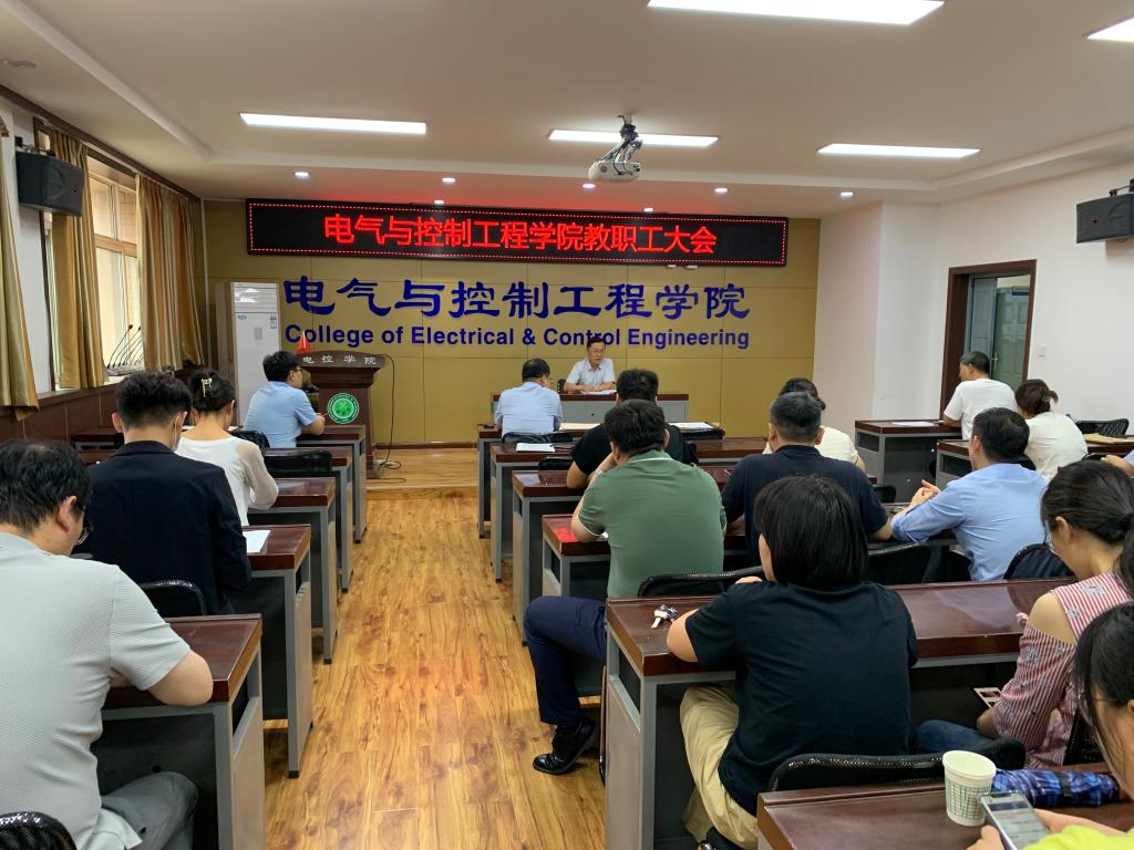 7月3日下午,今年会体育官网在骊山校园17-318会议室召开了全体教职工大会,学院班子成员、全体教职工参加。会议由党委书记杨华主持。