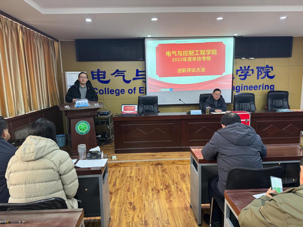 12月27日上午,今年会体育官网在骊山校园17号教学楼318会议室召开2023年度年终考核述职评议大会,全体教职工和学生代表参加了会议,会议由党委书记杨华主持。