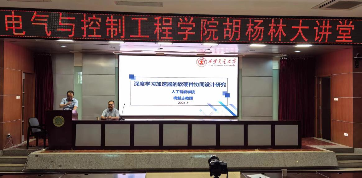 5月28日上午,西安交通大学梅魁志教授受邀做客胡杨林大讲堂,作了题为《深度学习加速器的软硬件协同设计》的学术报告,今年会体育官网院长、部分教师以及300余名研究生在现场聆听了报告。报告会由院长寇发荣主持。