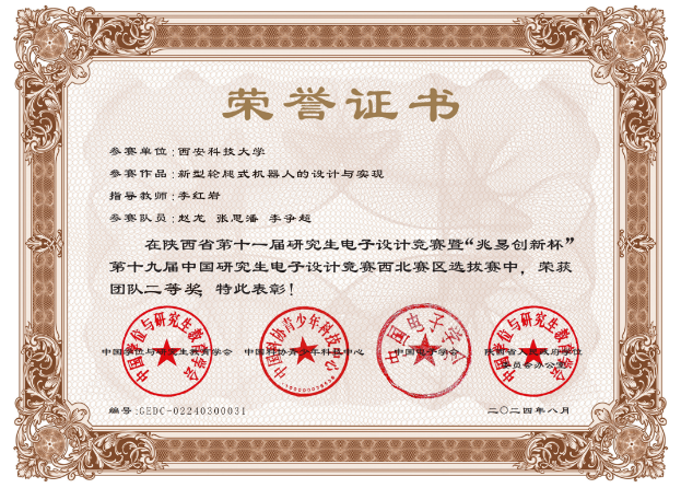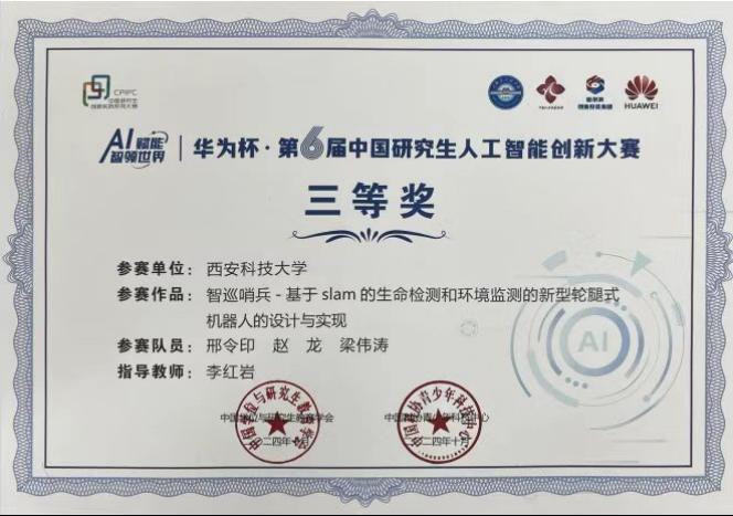 10月10日,“华为杯”第六届中国研究生人工智能创新大赛在哈尔滨落下帷幕。此次大赛中,由李红岩老师指导、邢令印等同学共同设计的作品《智巡哨兵-基于SLAM的生命检测和环境监测的新型轮腿机器人的设计与实现》荣获全国三等奖。同时我校获得优秀组织单位。