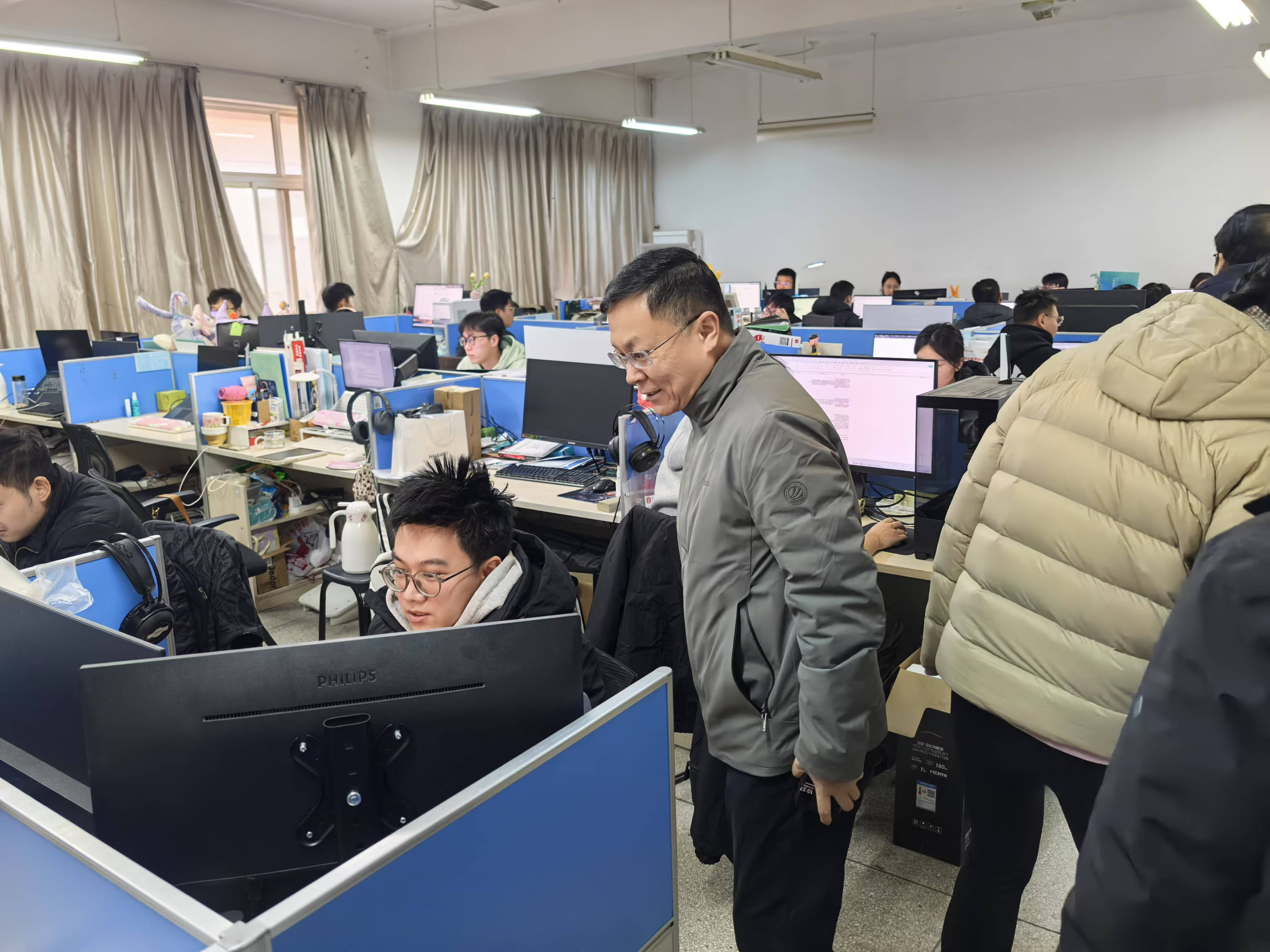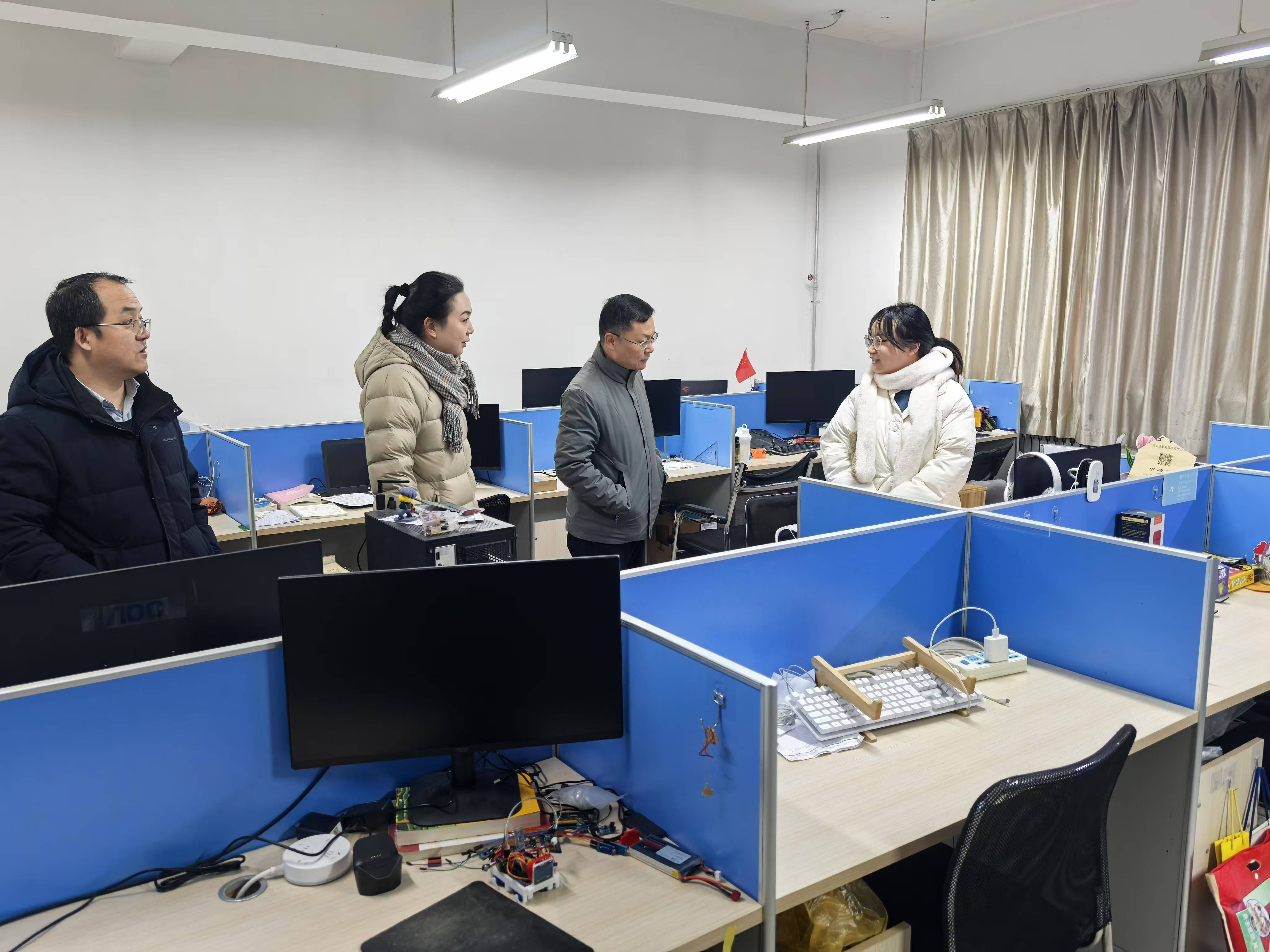 上午学院领导先后来到研究生工作室、科研实验室,与在校学生亲切交谈,详细询问了同学们的学习研究及生活情况,叮嘱同学们要做好工作室和实验室的安全责任落实,离校前关好门窗,切断电源。