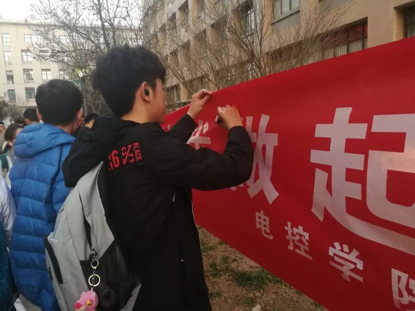 老师同学们在横幅上留下了自己的名字。