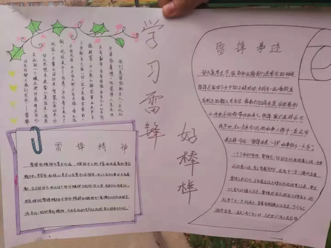 在各班同学的共同努力下赶制出了学雷锋主题的手抄报,于3月9日展示出各班成果。
