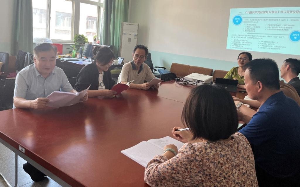 会上,赵永秀带领全体党员学习了《中国共产党纪律处分条例》。同时她指出,一流的学科建设,必须要有一流党建引领,要牢牢抓住严肃政治纪律和政治规矩这个纲,深入学习贯彻习近平总书记关于党纪学习教育的重要讲话和重要指示精神,深刻领会《条例》的目标要求、精神内涵,不断增强党纪学习教育的针对性、有效性,将党纪学习教育与立德树人相结合、与样板支部建设相结合、与学院高质量发展相结合,扎实推进党纪学习教育见行见效,推动全面从严治党向纵深发展。