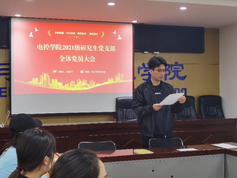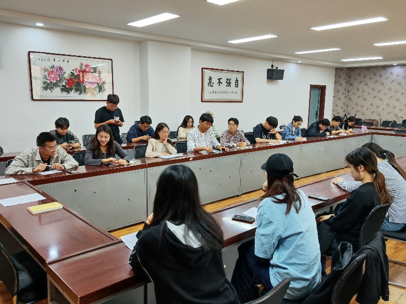 2023年9月22日,今年会体育官网2021级研究生党支部组织全体党员、发展对象召开支部党员大会,以“学习贯彻习近平新时代中国特色社会主义思想”为主题,扎实做好专题学习、谈心谈话、梳理问题、对照检查等工作。