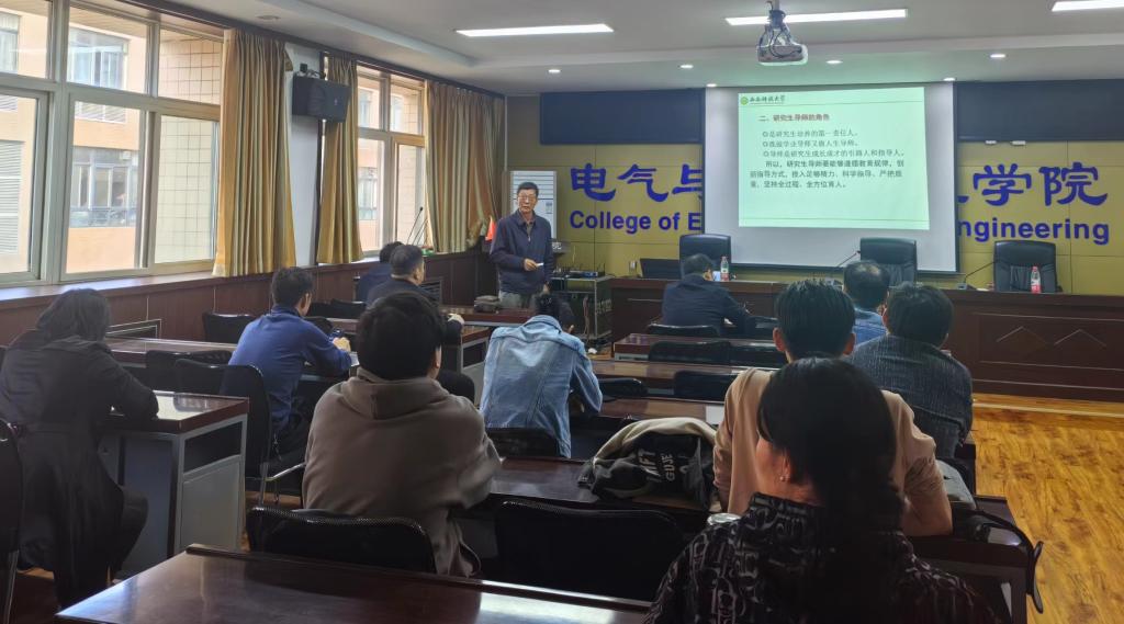 郭卫教授详细解读了教育部《关于全面落实研究生导师立德树人职责的意见》、《研究生导师指导行为准则》等文件要求,并从研究生导师的使命、职责、指导行为准则、论文指导等方面进行了深入阐述和案例分析。他指出,研究生导师是研究生培养的第一责任人,每位研究生导师都应切实把导师立德树人作为首要职责,以导师行为准则作为指导学生的行为准则,并着重分享了导师如何把好研究生学位论文质量关。他勉励研究生导师要做到政治素质过硬、师德师风高尚、业务素质精湛,坚持以德立身、以德立学、以德施教,努力做研究生成长的指导者和引路人。